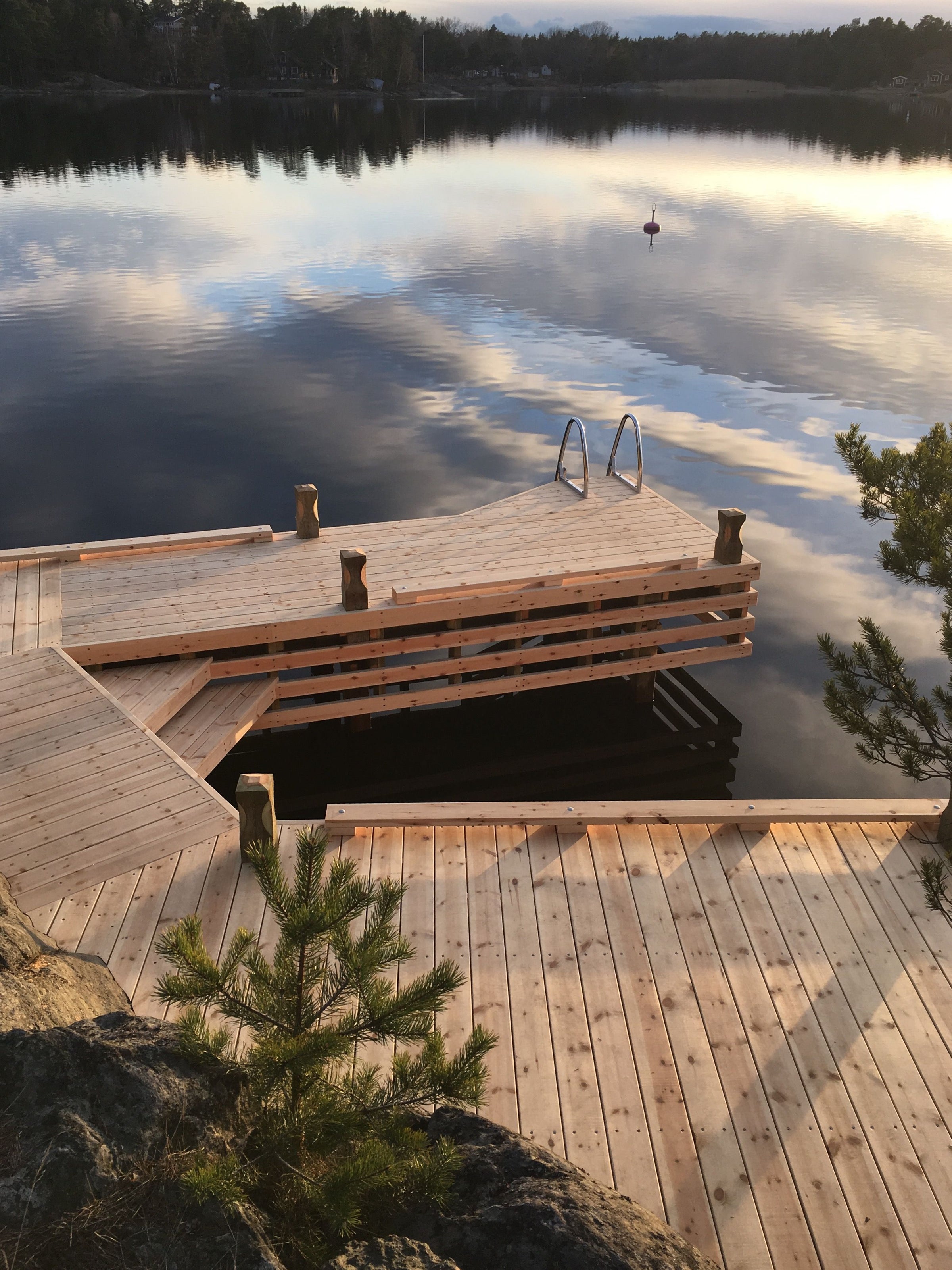 Wir entschieden uns, dass wir nicht die klassische Lärchenrippendiele wollten, sondern gekohlte Lärchendielen, die aus Gründen der Rutschfestigkeit gebürstet wurden. Fors natura hat uns erstklassiges Holz geliefert. Gäste bewundern es jeden Tag.